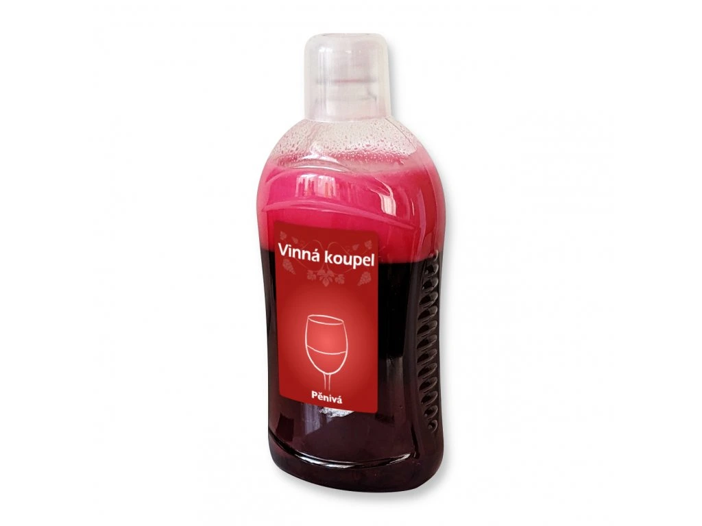 Koupel obsahuje pravé červené víno v kombinaci s olejovou složkou – hroznovým (vinným) olejem.